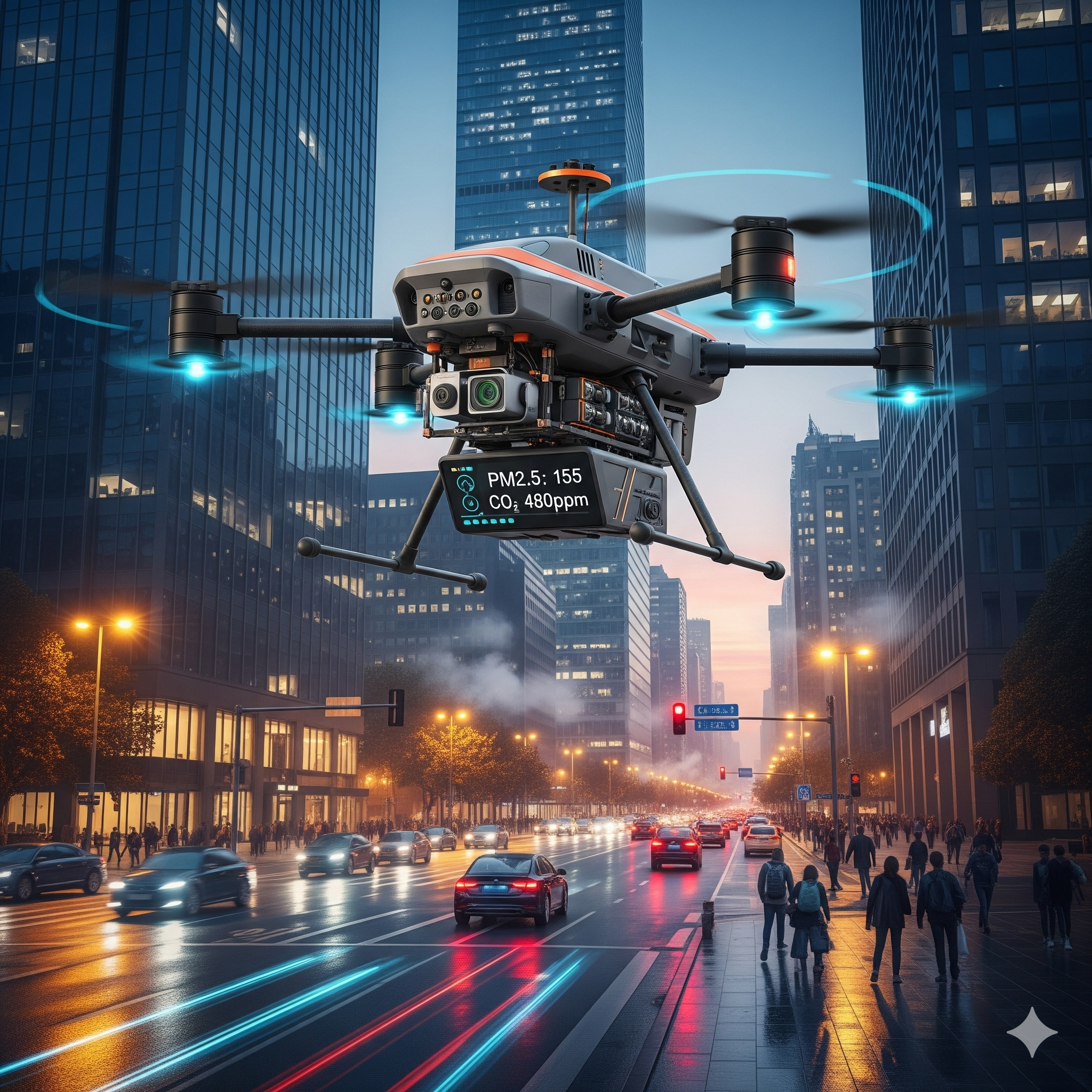 ออกแบบต้นแบบโดรนติดตั้งเซ็นเซอร์วัดค่าฝุ่น PM2.5 และคุณภาพอากาศแบบเรียลไทม์